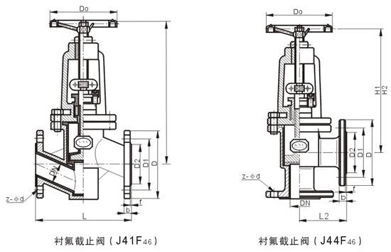 J44F46 角式襯氟截止閥適用在-50~150℃的各種濃度的王水、流酸、鹽酸、氫氟酸和各種有機(jī)酸、強(qiáng)酸、強(qiáng)氧化劑,還適用于各種濃度的強(qiáng)堿有機(jī)溶劑以及其它腐蝕性氣體,液體介質(zhì)的管路上使用.J44F46襯氟角式截止閥是指關(guān)閉(閥瓣)由閥桿帶動并沿閥座中心軸線做升降運(yùn)動的閥門,在管路上主要用來接通或截?cái)喙苈分械慕橘|(zhì),但不能做節(jié)流用。