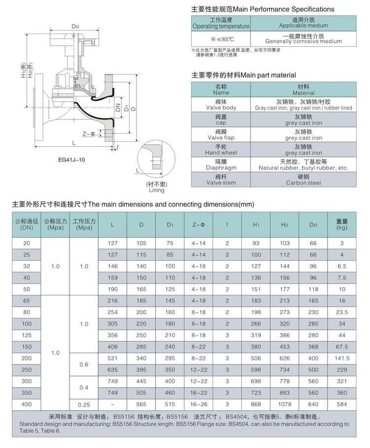 EG41J英標(biāo)襯膠隔膜閥產(chǎn)品概述:
