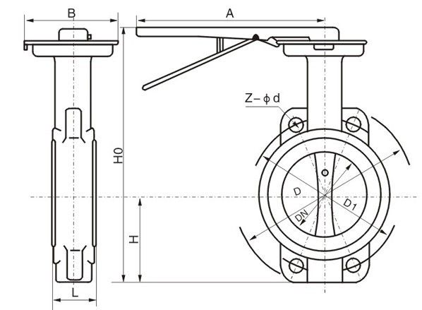 | DN | L | H | HO | A | B | 0.6MPa | 1.0MPa | 1.6MPa | |||